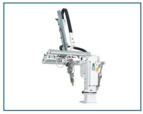 Applicable for small machines. 80T IMM pneumatically operated. Servo operated sprue picker for better accuracy